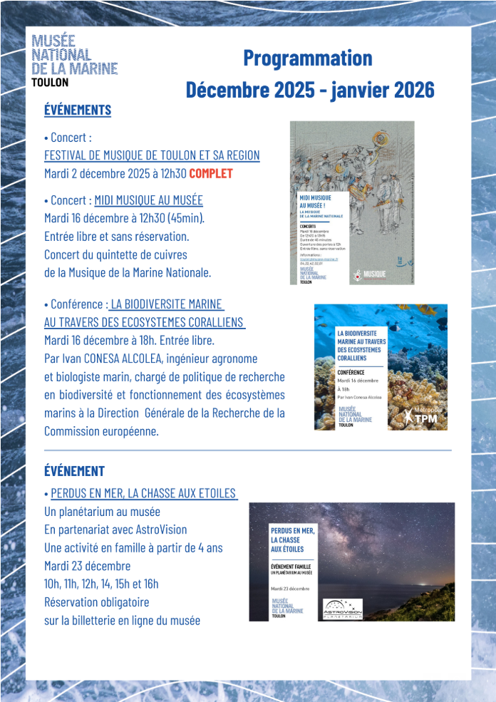 Accueil » Actualités » Musée National de La Marine : Programmation de Décembre 2025 et Janvier 2026